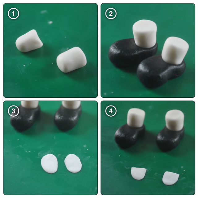 (19)Â Roll two small balls from the white fondant. Then into tear shapes. Flatten the top.