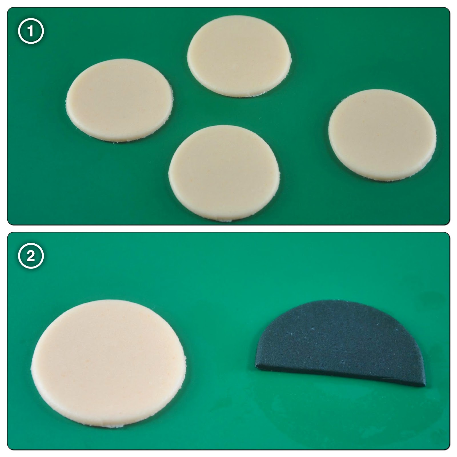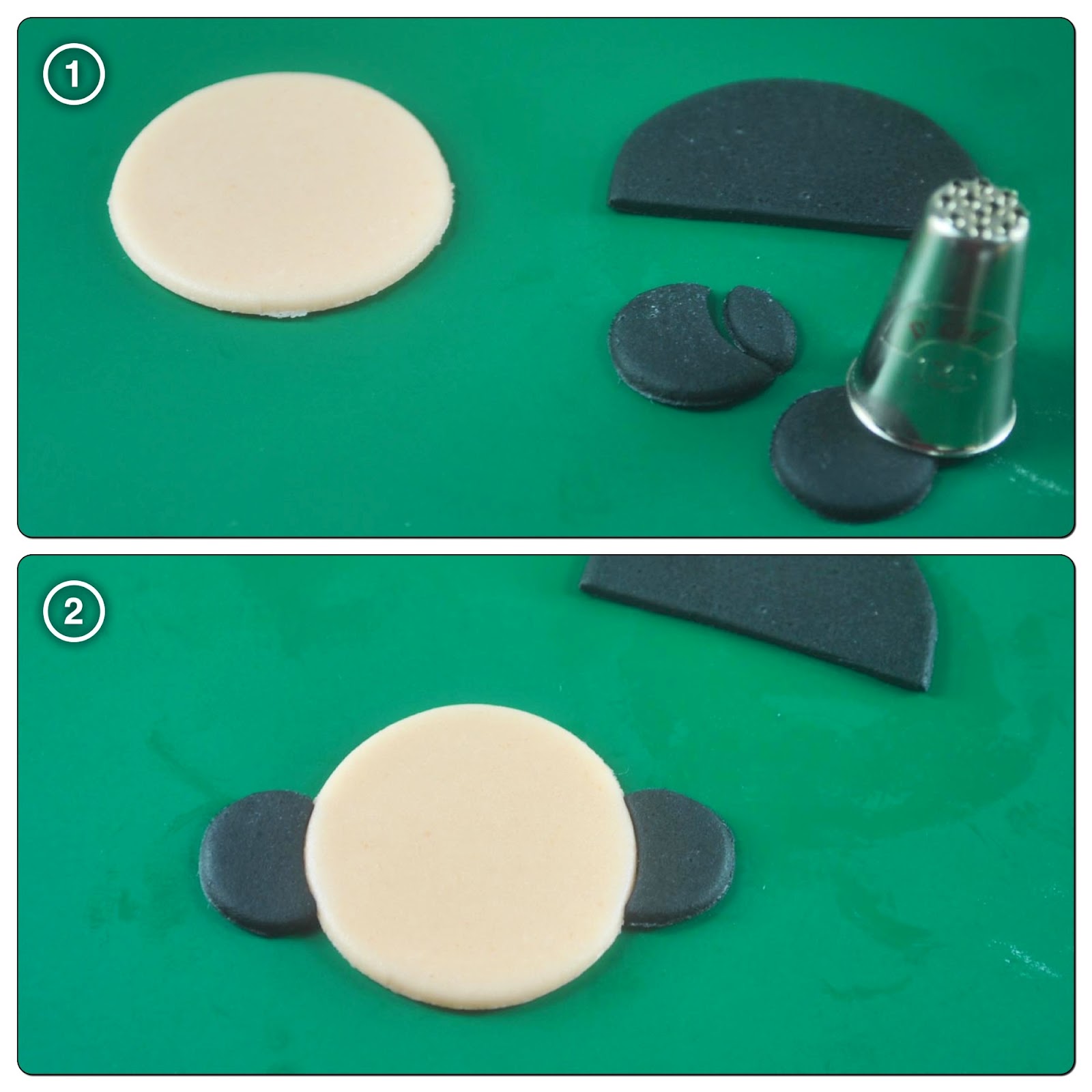 3. Cut out black fondant from the bigger round cutter and divide into two.