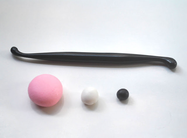 (5) Roll small two white fondant pieces into balls and press into Ms Ellie’s head