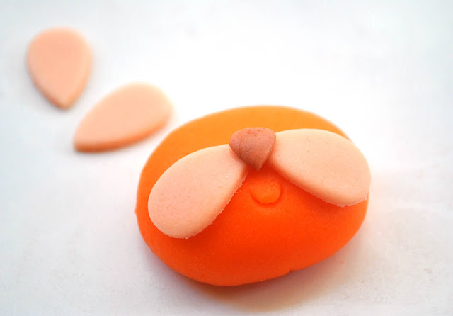 (3) Roll orange fondant into a ball and press it flat slightly