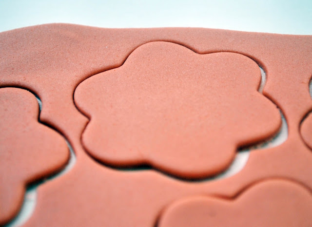 (1) Roll out brown fondant and cut out two flowers