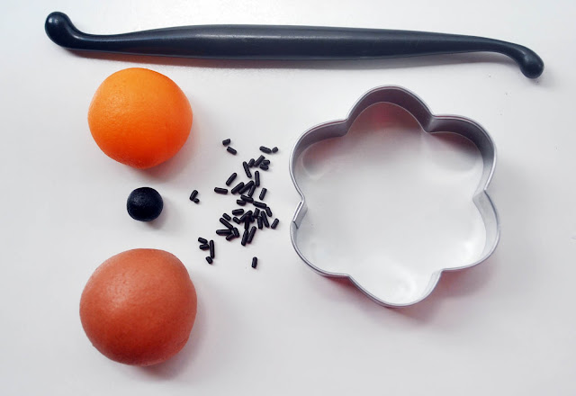 (7) To assemble, paste the orange fondant into the brown fondant, add the eyes and whiskers.