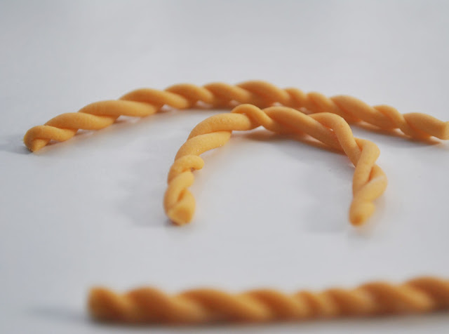 (10) Roll ivory fondant into a long thin rope