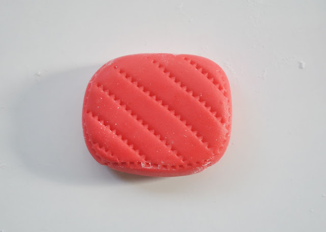 (5) Roll out a small amount of red fondant and cut it into a rectangle