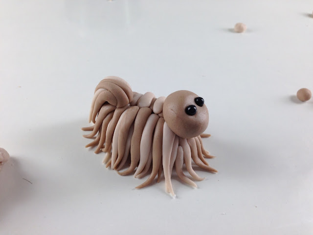 (4) Then curl it around one end. At the other end, attach a small ball for the face then add the eyes.